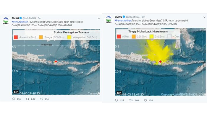 Potensi tsunami terjadi di pantai Lombok Barat bagian utara dengan status waspada dan pantai Lombok Timur bagian utara dengan status waspada. Waktu kedatangan tsunami diperkirakan pada pukul 18.48 WIB.
