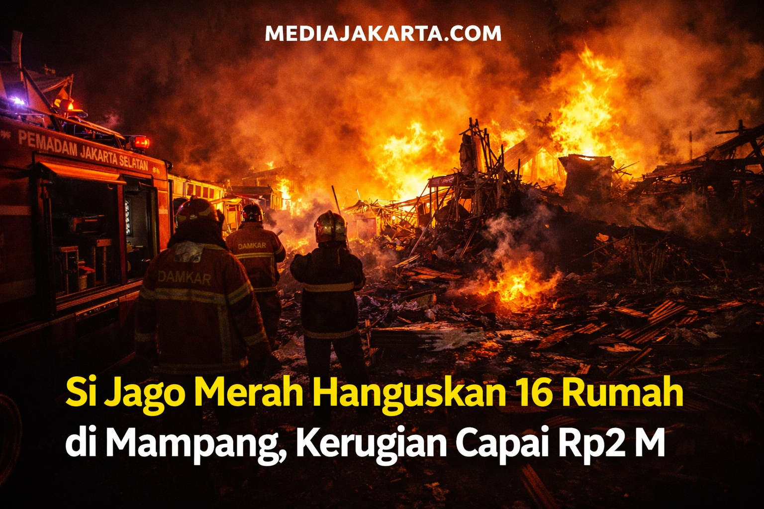 JAKARTA, MEDIAJAKARTA.COM– Kebakaran hebat melanda 16 rumah warga di Jalan Bangka III, RT 14/RW 02, Mampang Prapatan, Jakarta Selatan, Selasa (…). Peristiwa yang terjadi dini hari itu mengakibatkan kerugian materi ditaksir mencapai lebih dari Rp2 miliar.