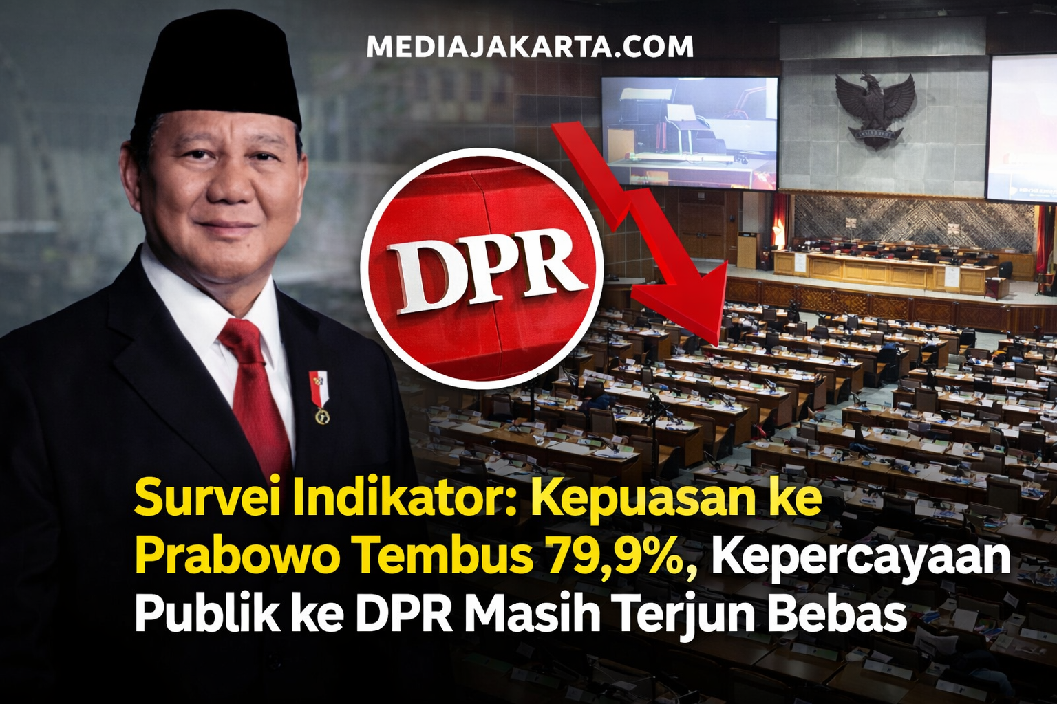 JAKARTA, MEDIAJAKARTA.COM– Hasil survei Indikator Politik Indonesia pada awal 2026 mencatat kontras tajam antara tingkat kepuasan publik terhadap Presiden Prabowo Subianto dan kepercayaan masyarakat kepada Dewan Perwakilan Rakyat (DPR).