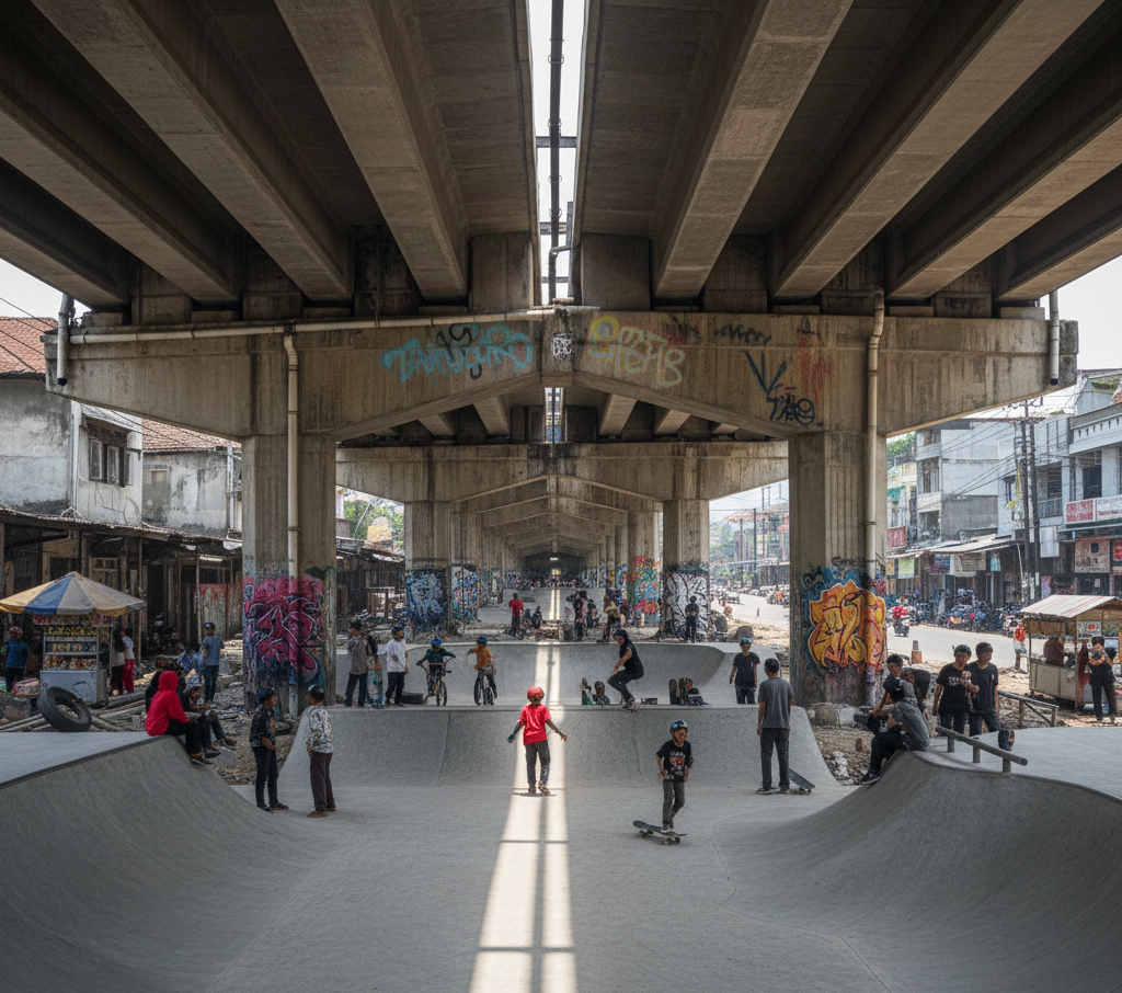 Ilustrasi kolong flyover menjadi skatepark sekaligus ruang publik yang ramah bagi warga. Dok : Mediajakarta.com/Gemini. JAKARTA, MEDIAJAKARTA.COM — Area kolong jalan layang (flyover) di Kecamatan Tambora, Jakarta Barat, bakal memiliki wajah baru. Pemerintah Kota (Pemkot) Jakarta Barat berencana mengubah kolong flyover menjadi skatepark sekaligus ruang publik yang ramah bagi warga. Rencana tersebut ditargetkan mulai direalisasikan […]