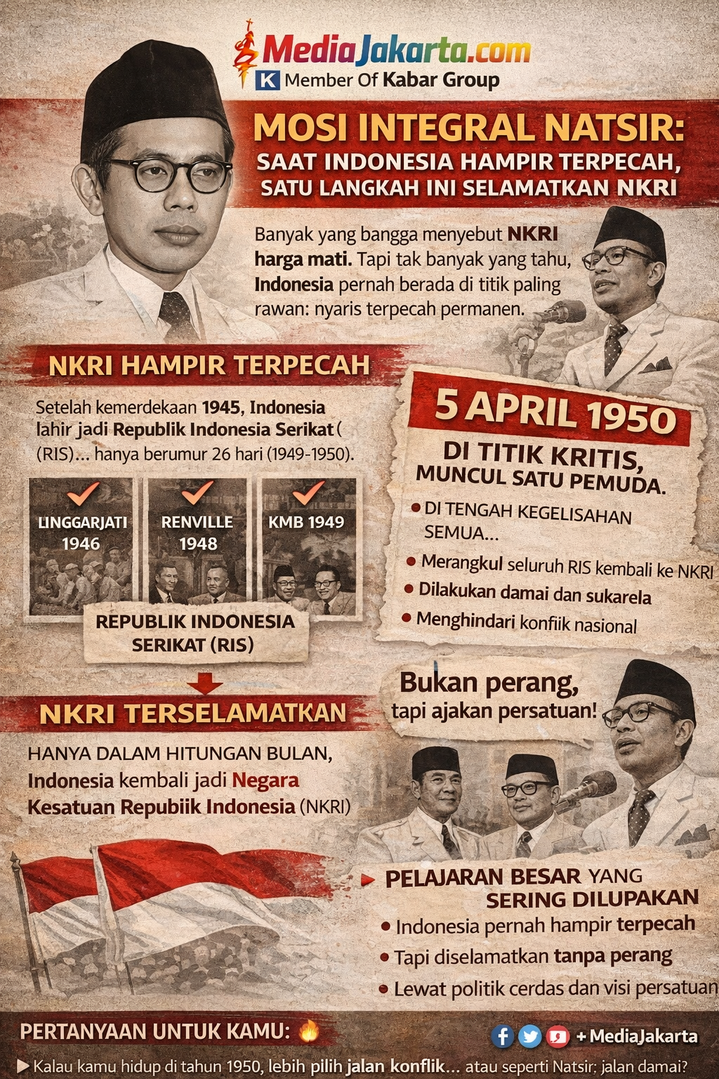 JAKARTA, MEDIAJAKARTA.COM – Banyak yang bangga menyebut NKRI harga mati. Tapi tak banyak yang tahu, Indonesia pernah berada di titik paling rawan: nyaris terpecah permanen.