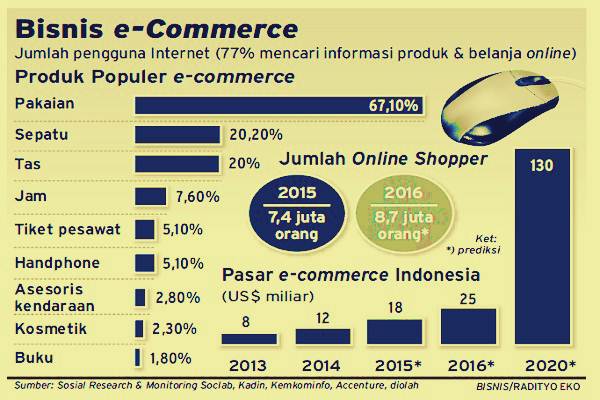 Dijelaskannya, peritel, seperti Chairul Tanjung memprediksi dua tahun ke depan 30 persen bisnis konvensional bakal diambil e-commerce. Hal itu sejalan dengan target pemerintah yang menyebutkan transaksi online Indonesia mencapai 1.775 trilliun pada 2020.