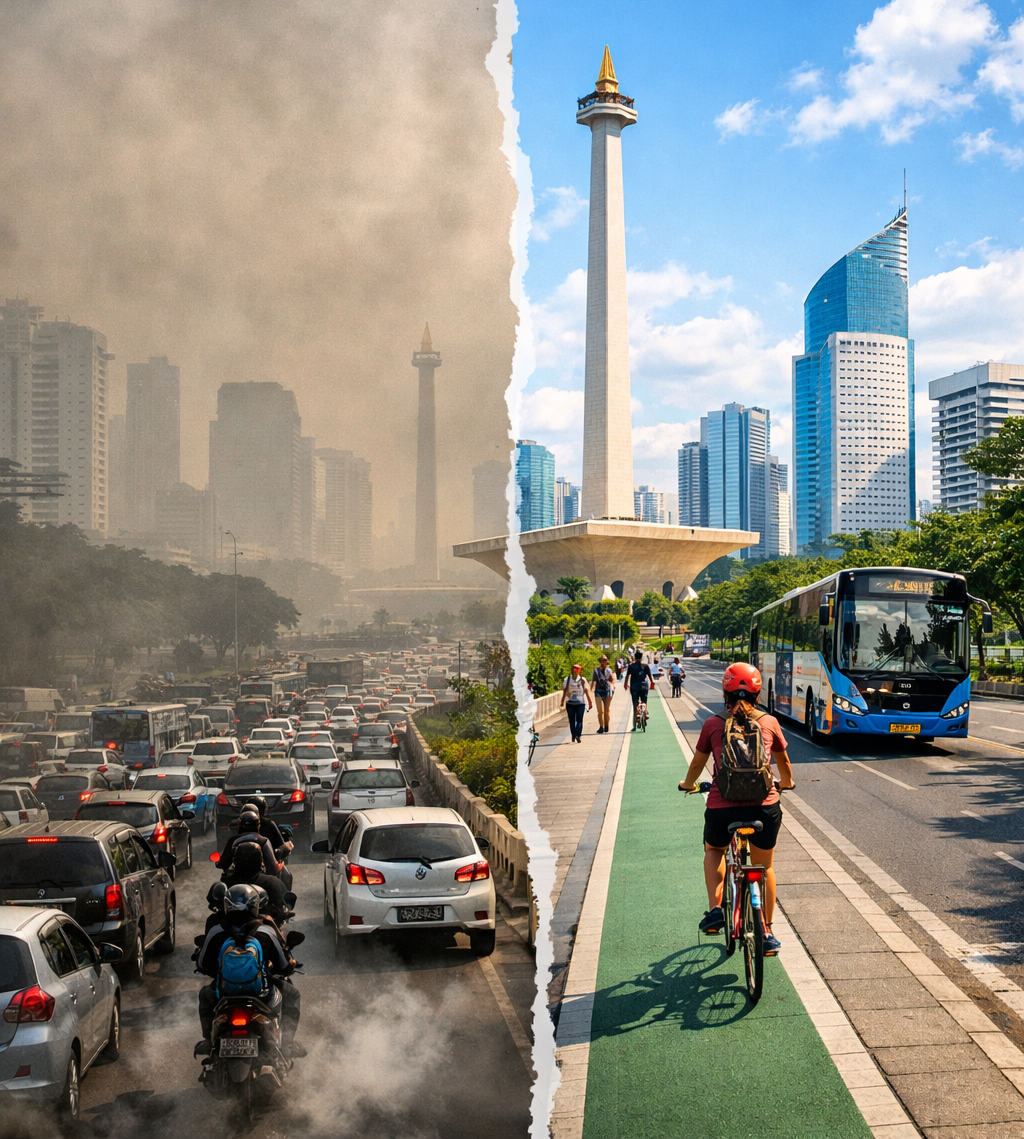 Bukan sekadar wacana, kebijakan ini sudah berbasis kajian. Berdasarkan studi Feasibility Assessment of Low Emission Zone (LEZ) oleh Breathe Jakarta tahun 2025, penerapan KRE secara luas dan terintegrasi berpotensi menurunkan konsentrasi polutan PM2.5 hingga 30 persen.